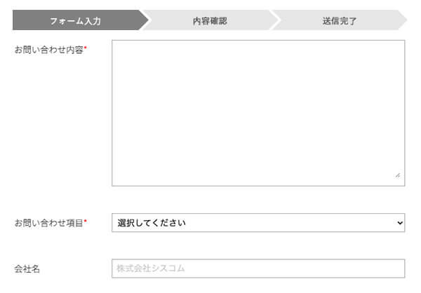 この問題は、入力フォームの上部に入力完了までのフローを表示することで改善できます。送信完了までの道のりが示され、自分が今どの地点にいるのかがわかることで、ユーザーはストレスを感じにくくなります。