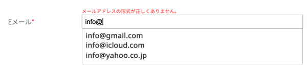 とにかくユーザーの負担を軽減させるためにメールをサジェスト表示させることもひとつの手です。@gmail.comなど、@以降のアドレスと入力項目の下に表示させ、サジェスト表示させて、入力の手間を省きましょう。